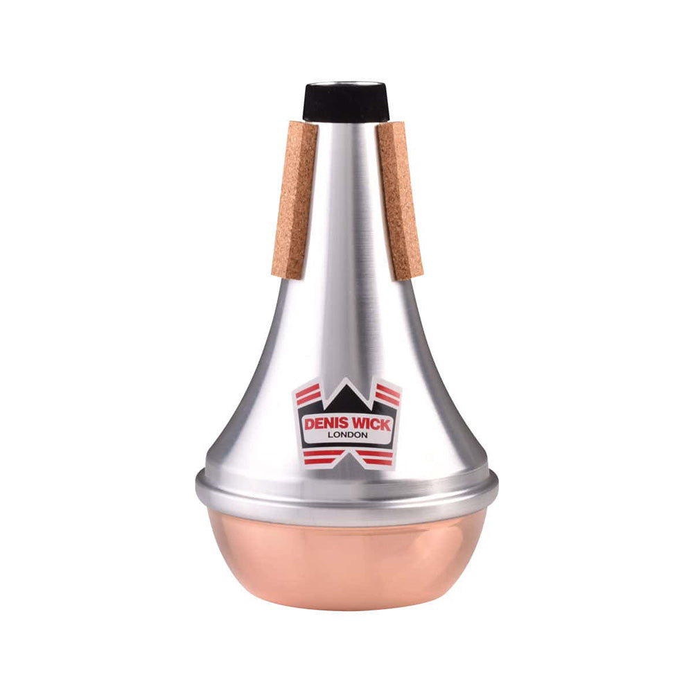 Denis Wick Straight Mute for Bb Trumpet or Cornet with Copper Bottom (DW5504C). Hand‑made from high‑purity spun aluminum. Provides strong projection, consistent intonation in all registers, and preserves airflow so the instrument blows freely. Delivers both powerful fortissimo and soft pianissimo, offering versatility across dynamic ranges.