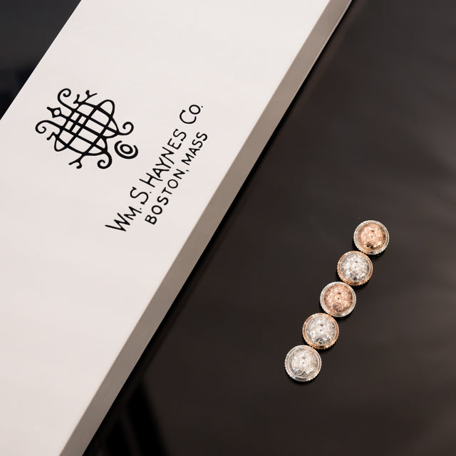 Haynes Custom Crowns come in 4 different material options: silver, silver with 14k rose gold ring, 14k gold with silver ring, or 14k gold. Any crown can be embellished with one of 5 gemstones, a variety of engraving patterns. and the option of standard or light weight.