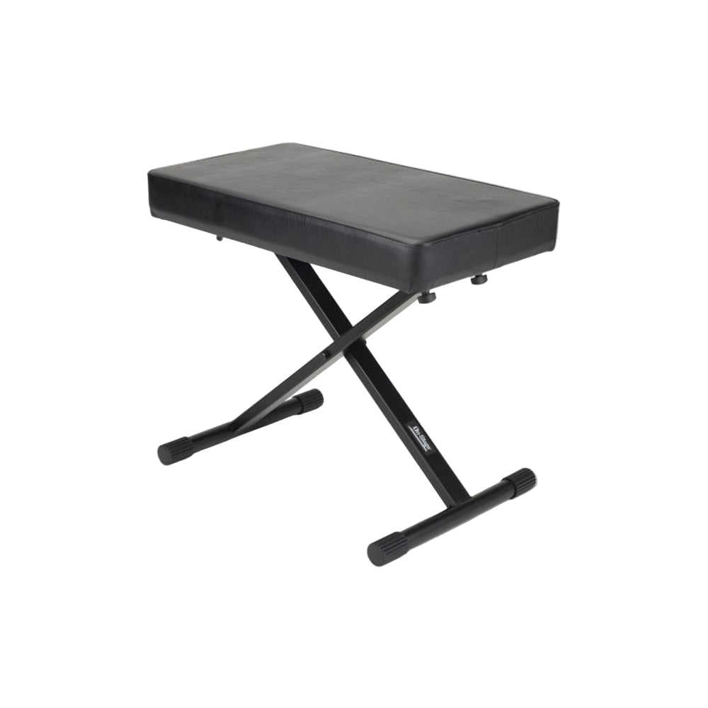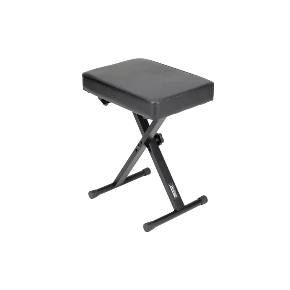 The On‑Stage X‑Style keyboard benches provide stable, adjustable seating for keyboard players. The Three‑Position X‑Style Bench features a padded cushion with a foldable metal frame and three height adjustments for comfortable practice or performance. The Deluxe X‑Style Keyboard Bench offers a cushioned seat with adjustable height, a foldable frame, and enhanced comfort for longer playing sessions. Both benches are portable, easy to store, and designed to provide reliable support for keyboardists.