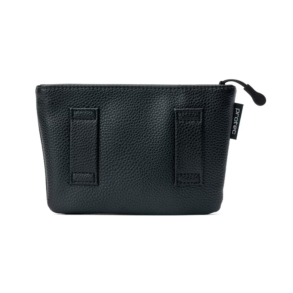 The Protec Trombone/Alto Sax/Clarinet Slim Mouthpiece Pouch is a sleek, padded pouch set designed to protect and organize up to three mouthpieces for trombone, alto saxophone, or clarinet. Crafted from durable premium leatherette, the exterior resists wear while the soft, non‑abrasive, breathable nylex interior lining cushions each mouthpiece. Individual padded sleeves cover the full length of each mouthpiece for secure protection. Pull tabs make inserting and removing mouthpieces effortless, and a small internal storage area lets you carry essential accessories. A secure zipper closure keeps contents safe, and backside belt loops allow hands‑free attachment to a belt or strap for convenient access. This pouch combines practicality with a compact, stylish design for musicians on the go. Comes in black.