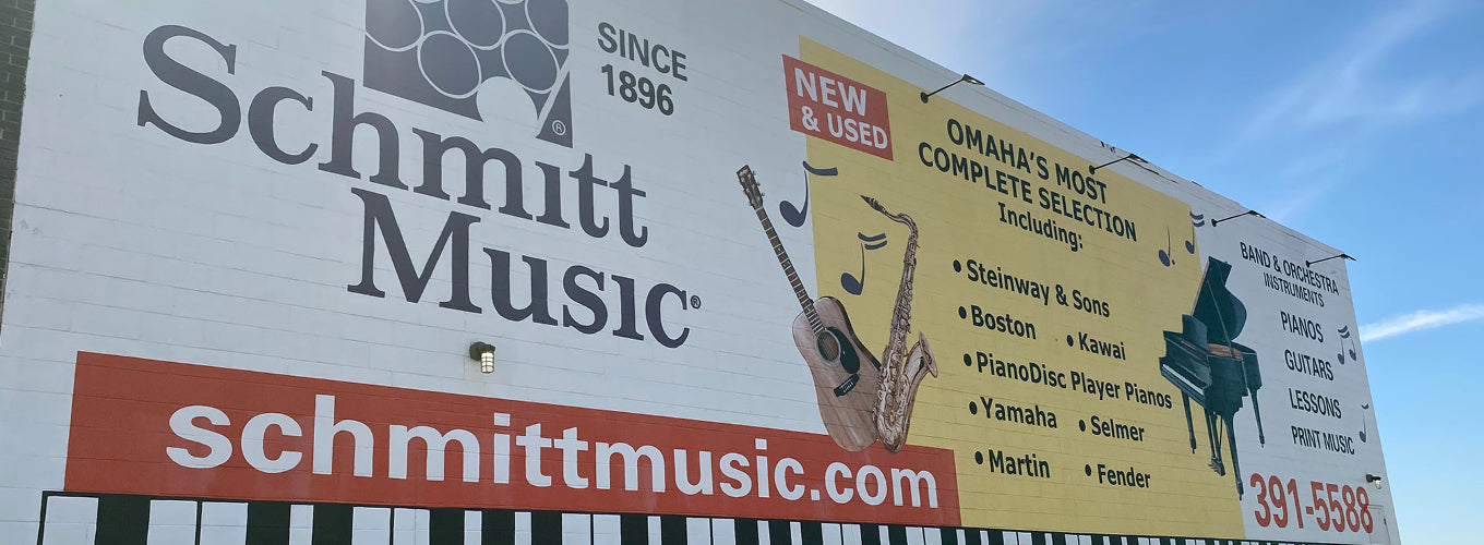 Extensive arrangement of pianos, student and advancing woodwind, brass, and string instruments, and an assortment of ukuleles.
